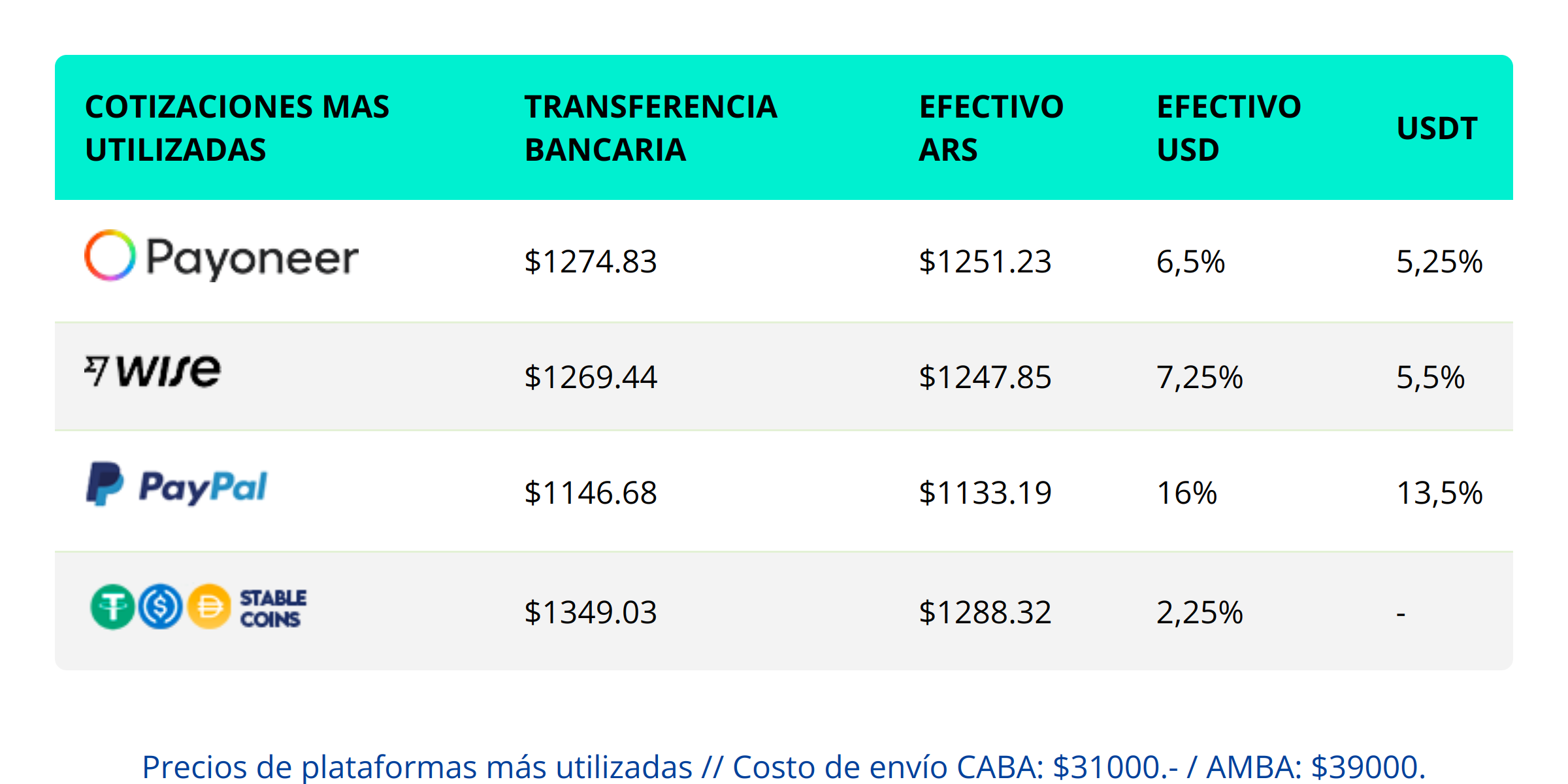 Apertura de cotizaciones más utilizadas – Lunes 04.08.2025
